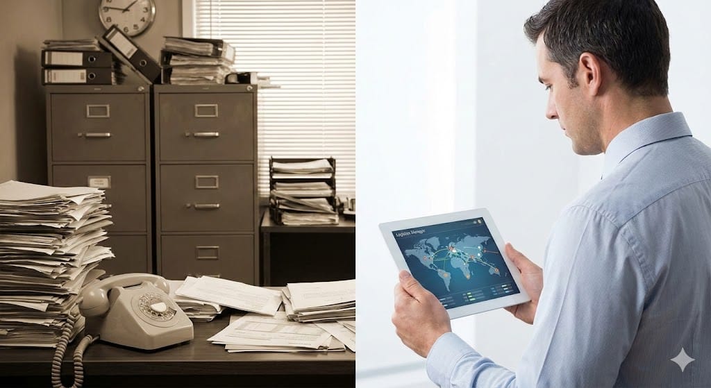 Die traditionelle Logistik war lange Zeit geprägt von manuellen Prozessen, Papierkram und isolierten Datensilos. Informationen wurden oft telefonisch oder per Fax weitergegeben, was zu Intransparenz und Fehleranfälligkeit führte.